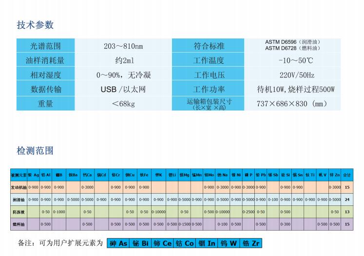 采用CCD阵列检测,进行油液多元素全谱分析,分析通道选择/更改非常灵活;