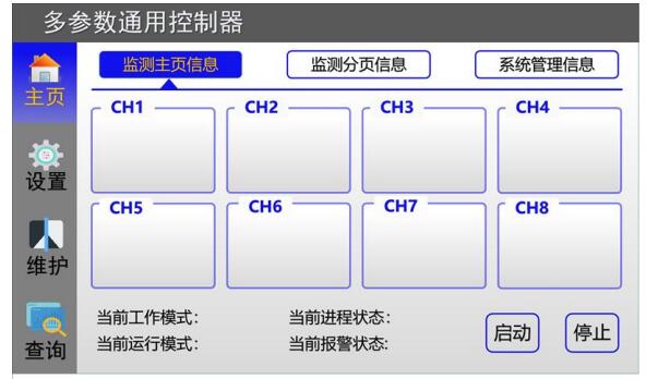 通用控制器使用7寸觸摸顯示器,可根據用戶選擇的采集通道數,自動進行布局顯